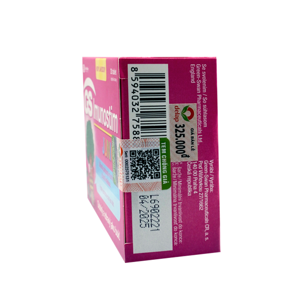 Phụ liệu: Dextrose, chất tạo ngọt (Sorbitol), chất điều chỉnh độ acid (malic acid, calcium carbonate), siro tinh bột ngô, gelatin, chất nhũ hóa (acetylated monoglycerid), chất làm bóng (polyethylene glycol), chất làm dày (gồm xanthan),chất chống đông vón (talc, magnesium stearat), hương dâu, màu thực phẩm (titan dioxid), hydroxypropyl methyl cellulose vừa đủ 01 viên 1060mg